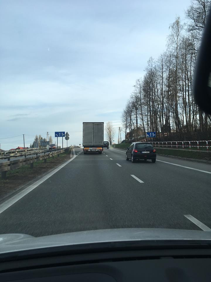 Prędkość zestawu w granicach 90 km/h na ograniczeniu do 70 km/h. Tylko całkowity zakaz wyprzedzania dla ciężarowych i autobusów może zakończyć te "wyścigi rydwanów"!