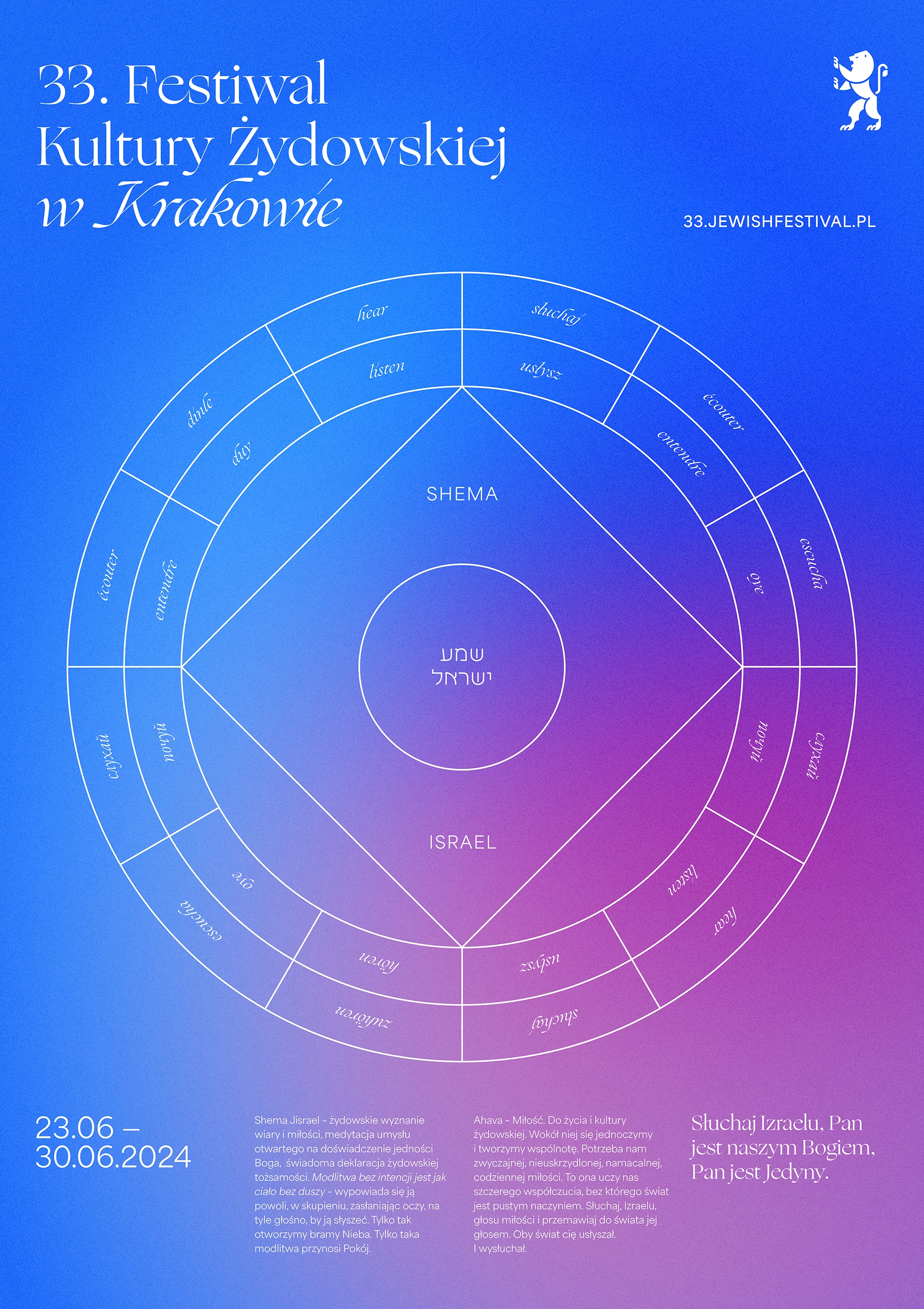Najważniejsza żydowska modlitwa – Słuchaj, Izraelu, to nie tylko religijne wyznanie wiary. To deklaracja przynależności do Narodu Żydowskiego, często recytowana również przez niereligijnych Żydów. Jest kaligrafowana na zwoju papieru, umieszczanym w mezuzach na drzwiach domów żydowskich. Towarzyszy Żydom przez całe życie – dlatego też uznaliśmy, że będzie to idealny tytuł dla festiwalu, który rozpoczyna nową serię tematyczną FKŻ.