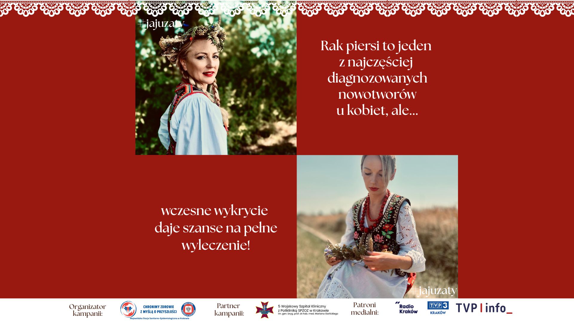 Tegoroczna edycja kampanii jest wyjątkowa - bardziej lokalna i jeszcze bardziej nasza! W tej odsłonie kampanii zachęcamy kobiety z Małopolski do badań… w strojach krakowskich. Aby wzmocnić lokalny charakter kampanii i wyraźnie zaakcentować nasze przywiązanie do małopolskiej tożsamości, świadomie wprowadziliśmy do komunikacji elementy gwary regionalnej.