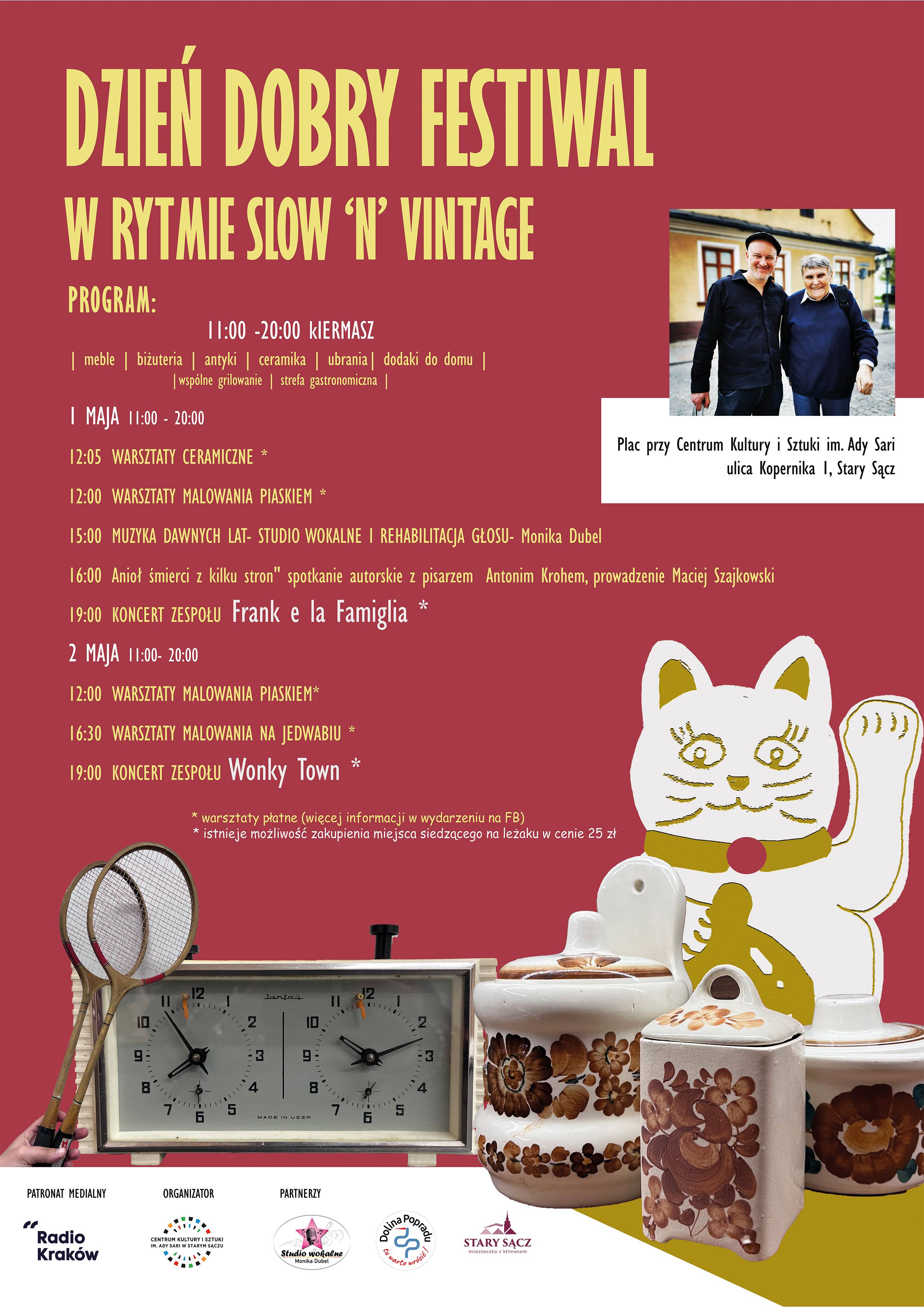 Już dzisiaj serdecznie zapraszamy na pierwszą edycję DZIEŃ DOBRY FESTIWALU, który będzie się odbywał w rytmie slow i vintage. Jest to pierwsze takie wydarzenie w Starym Sączu, które skupiać będzie wokół siebie osoby, którą lubią modę, dodatki i przedmioty z drugiej ręki oraz dobry design.
