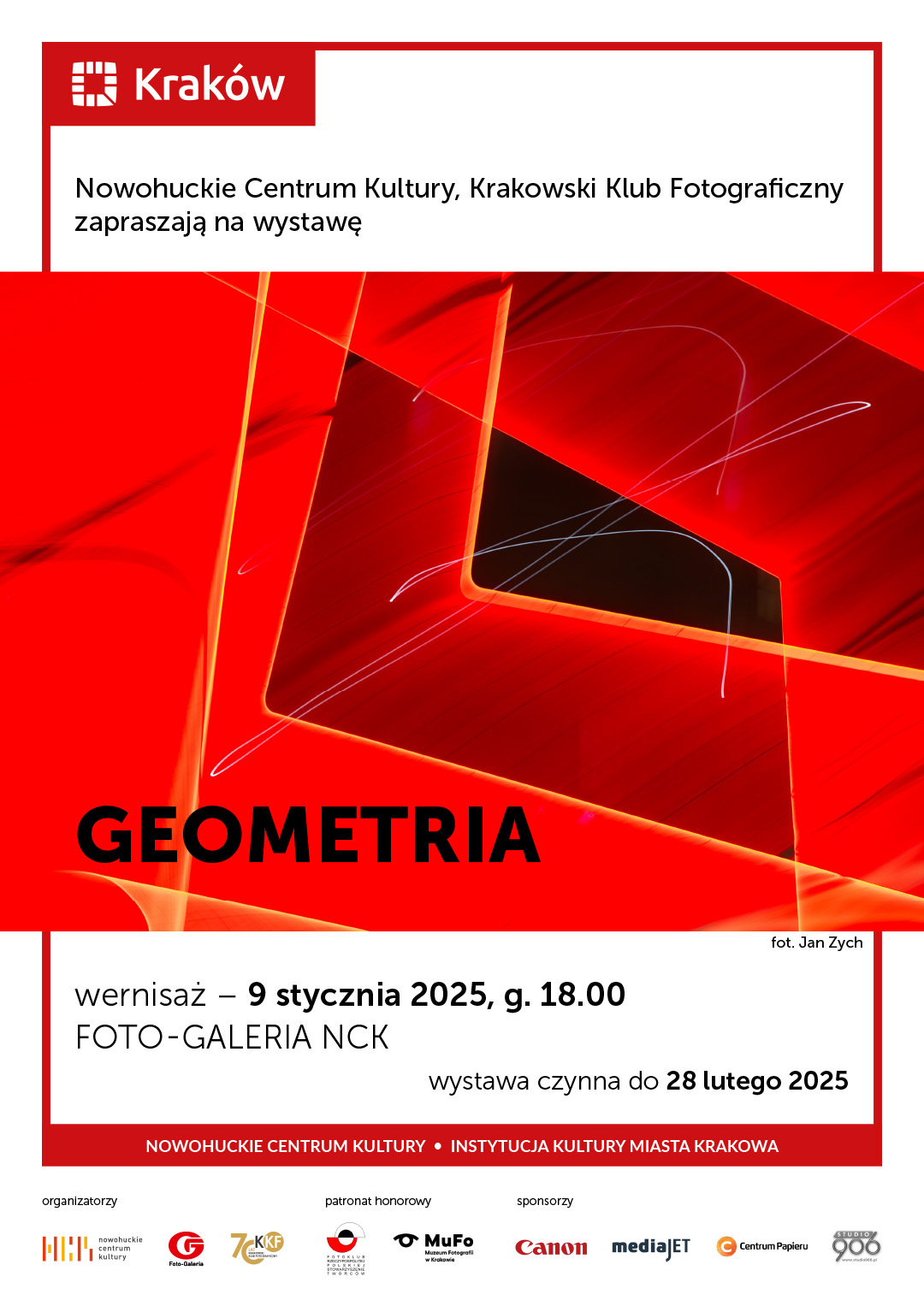 Wystawą „Geometria” otwieramy rok jubileuszowy Krakowskiego Klubu Fotograficznego: w 2025 roku świętujemy 70 lat działalności. Nasza wystawa ma numer 1 na liście jubileuszowego projektu pod hasłem „70 wystaw na 70-lecie”. To ogromne wyzwanie, ale jesteśmy zmotywowani i przygotowani, aby promować swoją twórczą działalność w coraz to nowych miejscach, aby trafiać do coraz większego grona sympatyków i pasjonatów fotografii. Przez rok będziemy prezentować wystawy nie tylko w Krakowie, ale w całej Polsce, ponadto kilka wystaw pojedzie za granicę. Będą wystawy grupowe i indywidualne, nowe, nigdzie jeszcze nie prezentowane oraz starsze w nowej, jubileuszowej odsłonie, a także archiwalne, wspominające fotografów, których nie ma już wśród nas, ale którzy wpisali się w historię Krakowskiego Klubu Fotograficznego zostawiając w archiwum klubowym znakomite, głównie czarno-białe fotografie – Monika Stachnik-Czapla, Prezes Krakowskiego Klubu Fotograficznego
