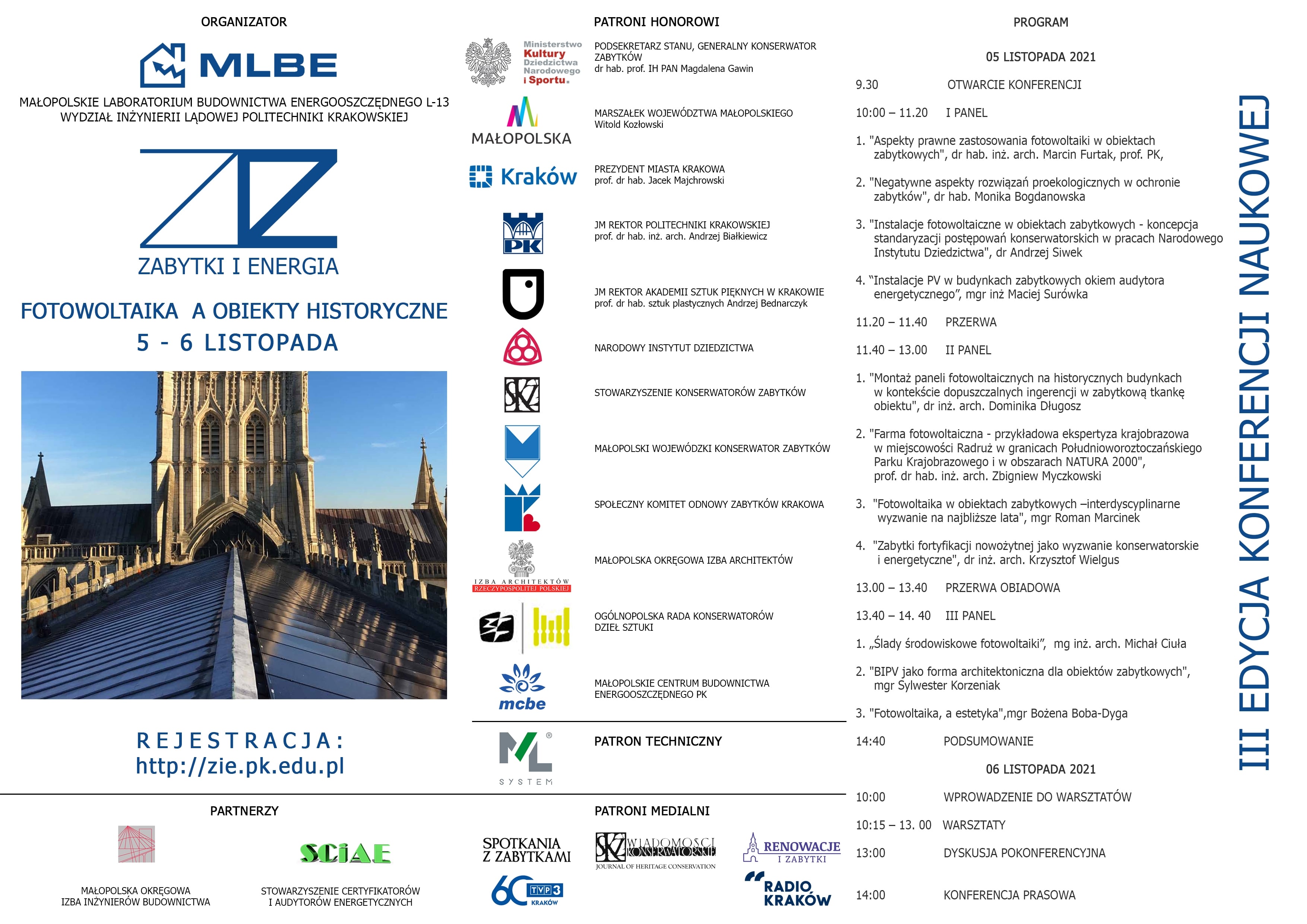 „Fotowoltaika a obiekty historyczne” to zatem głos w dyskusji nad połączeniem tradycji z przyszłością, dawnej substancji materialnej i odnawialnych źródeł energii oraz paradygmatem konserwatorskim i użytkowym. To głos teorii, praktyki oraz bieżących wyzwań stawianych przez rynek i jego interesariuszy. Gorąco zapraszamy do wzięcia czynnego udziału w konferencji!