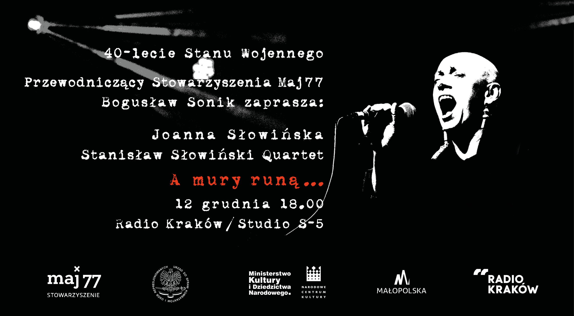 Niepowtarzalny w formie i nastroju spektakl muzyczny, zrealizowany z okazji 40. rocznicy wprowadzenia stanu wojennego, w wykonaniu Joanny Słowińskiej i formacji Stanisław Słowiński Quartet, odbył się w niedzielę 12 grudnia o godz. 18.00 w Studiu im. Romany Bobrowskiej Radia Kraków. Podczas koncertu zabrzmiały piosenki doby stanu wojennego, pieśni o wolności z repertuaru Jacka Kaczmarskiego i Jana Krzysztofa Kelusa, pieśni wolnościowe zrywów europejskich, m.in. portugalskiej „rewolucji goździków” oraz autorstwa niezależnych poetów rosyjskich: Włodzimierza Wysockiego, Aleksandra Galicza w tłumaczeniach Jana Słowińskiego.