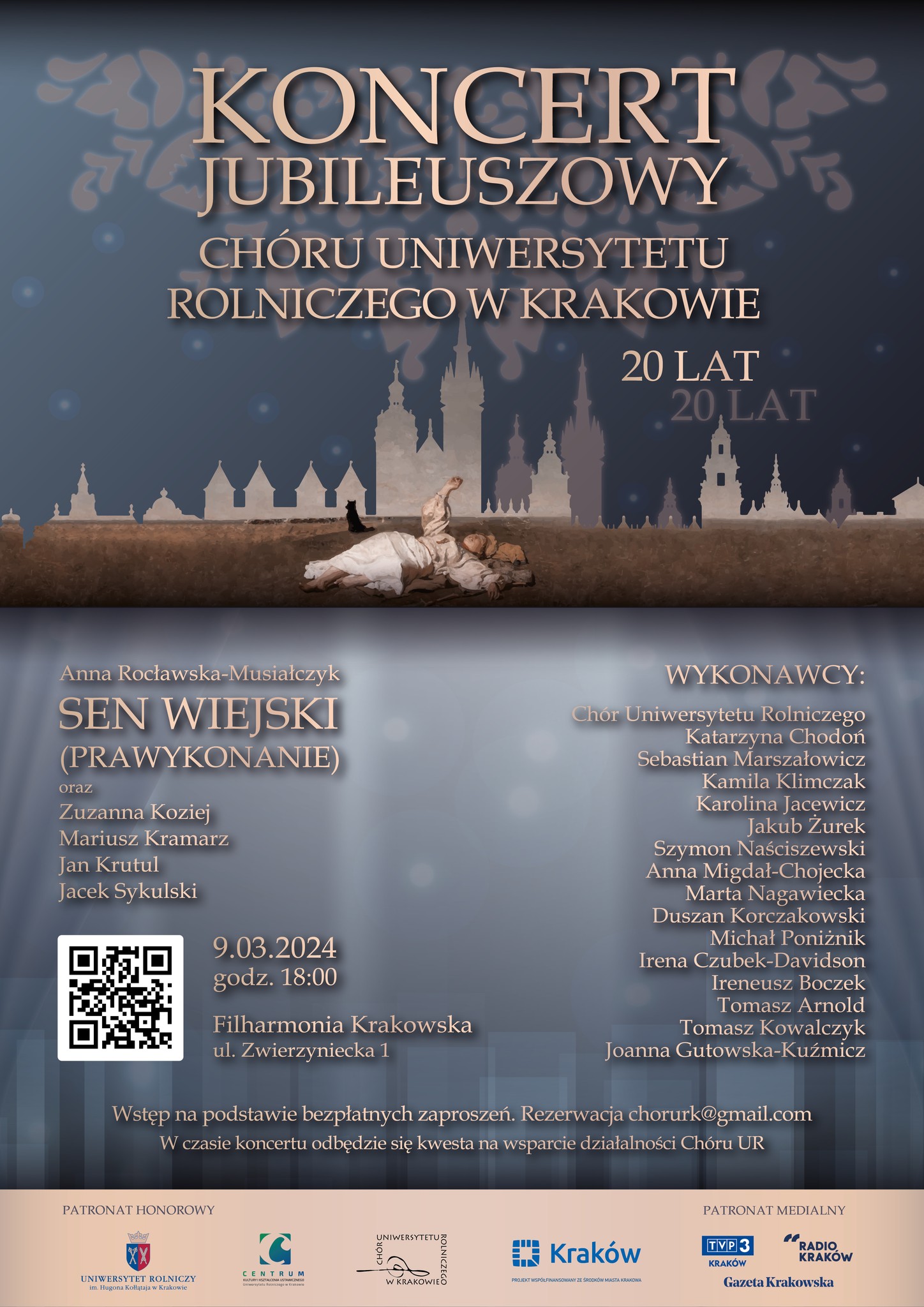 Głównym punktem programu będzie prawykonanie specjalnie napisanej, wieloczęściowej kompozycji Anny Rocławskiej-Musiałczyk do słów Bolesława Leśmiana pt. Sen Wiejski, w której wystąpi 80-cioosobowy Chór Uniwersytetu Rolniczego z towarzyszeniem zespołu instrumentalnego, Sebastian Marszałowicz – solista Opery Krakowskiej, Katarzyna Chodoń – solistka śpiewu ludowego oraz narratorka – aktorka Teatru Bagatela, Kamila Klimczak. Utwór Anny Rocławskiej-Musiałczyk wzbogacą animacje autorstwa Karoliny Jacewicz – autorki scenografii i mappingów multimedialnych wielu koncertów i przedstawień operowych.