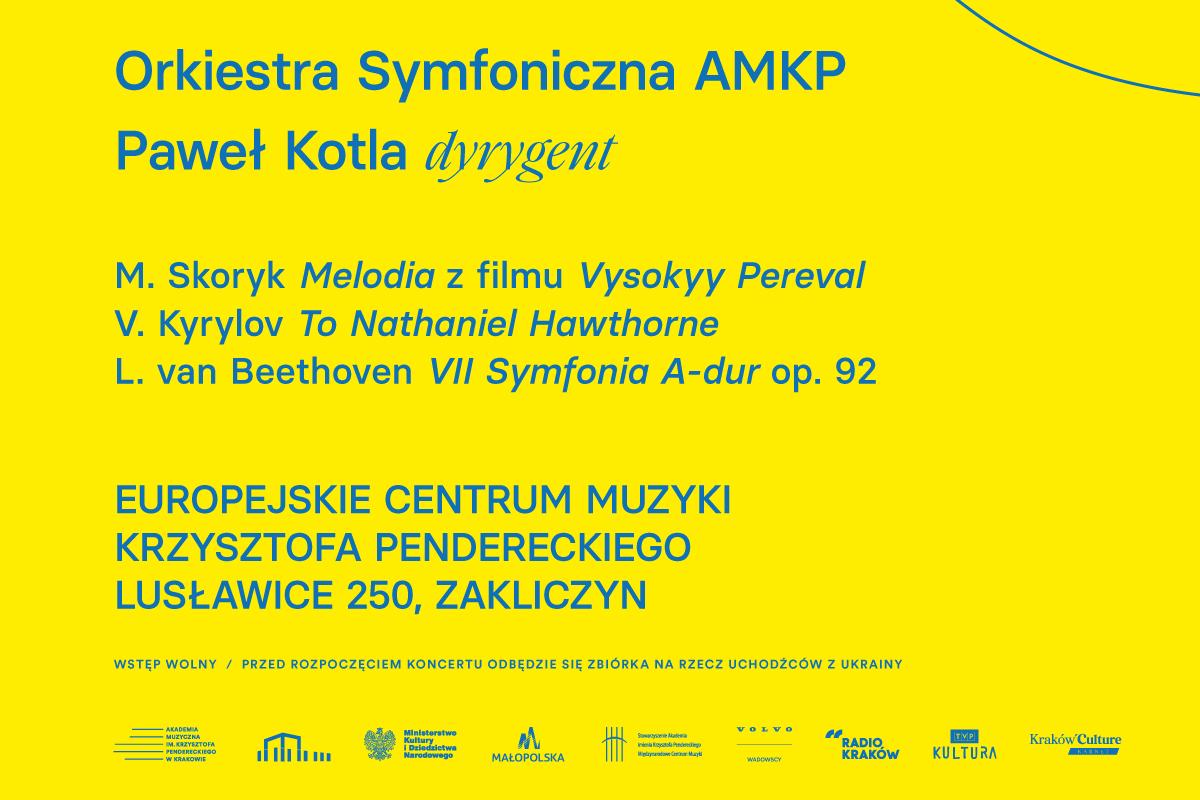 Działając w imię solidarności z Narodem Ukraińskim będącym obiektem brutalnej agresji i stawiającego jej bohaterski opór, a także wyrażając stanowczy sprzeciw wobec działań wojennych, Europejskie Centrum Muzyki Krzysztofa Pendereckiego wspólnie z Akademią Muzyczną im. Krzysztofa Pendereckiego w Krakowie podejmują decyzję o zaprezentowaniu utworów ukraińskich twórców: Myroslava Skoryka oraz Viacheslawa Kyrylowa.