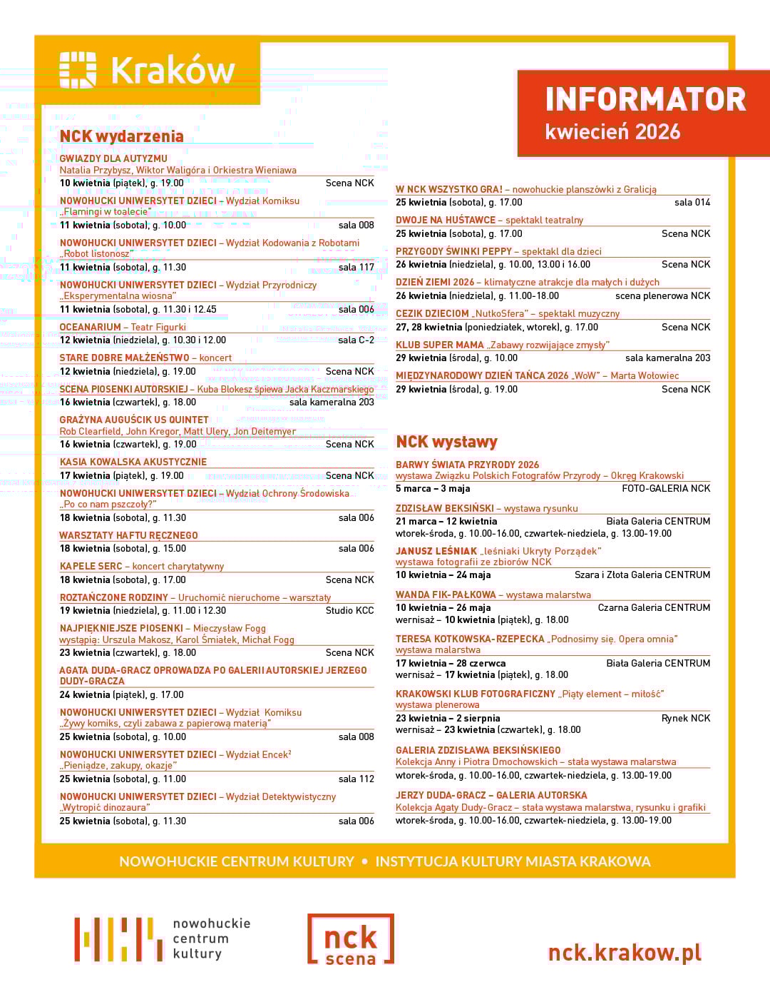 26 kwietnia (niedziela), g.11.00-18.00, scena plenerowa NCK