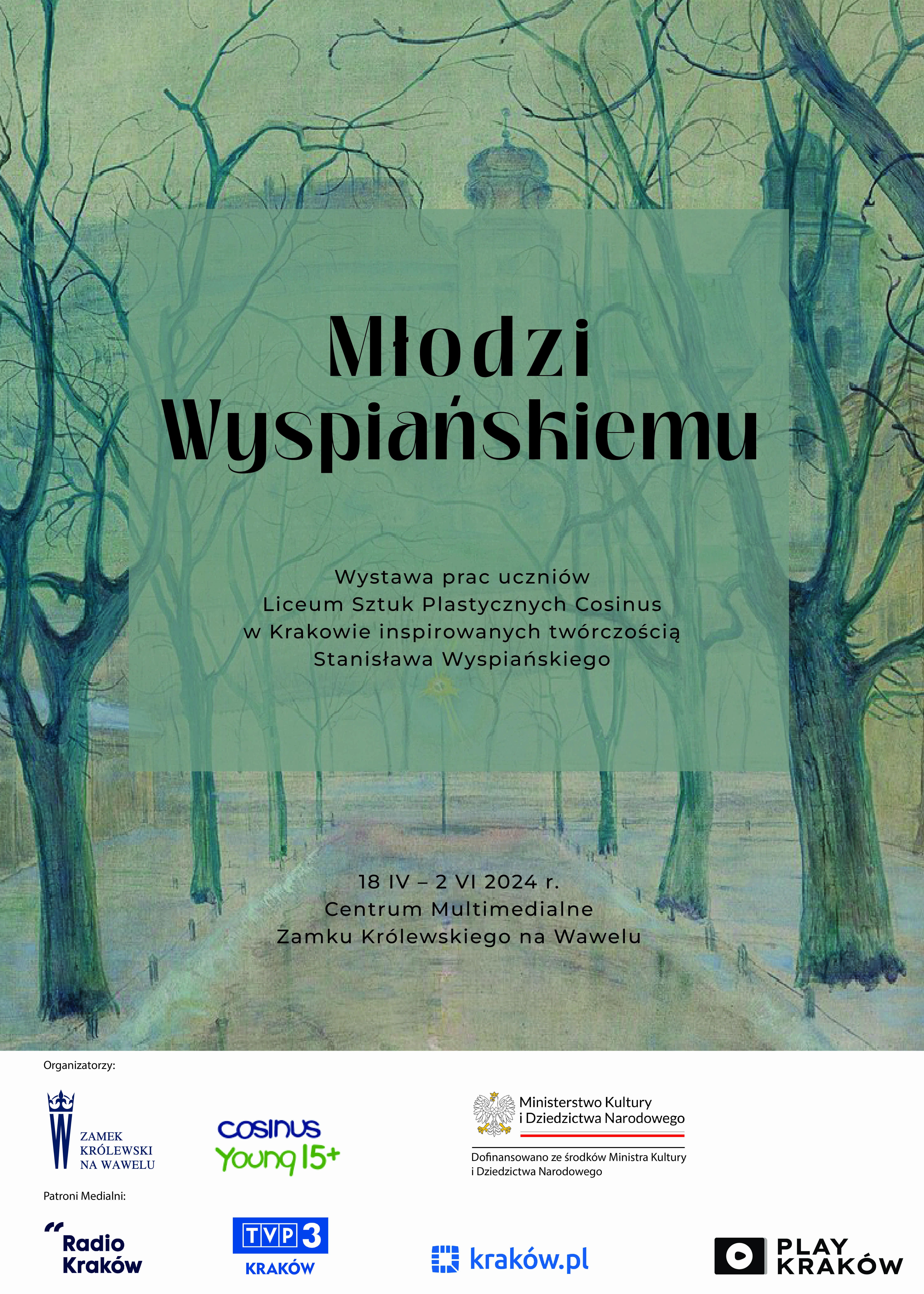 Na ekspozycji zaprezentowane zostaną prace uczniów z nowopowstałego Liceum Sztuk Plastycznych Cosinus w Krakowie, które są efektem współpracy szkoły z Zamkiem Królewskim na Wawelu. Wystawa będzie nosić tytuł "Młodzi Wyspiańskiemu" i wpisze się w wystawę czasową „Wawel Wyspiańskiego”, której organizatorem jest Zamek Królewski na Wawelu.