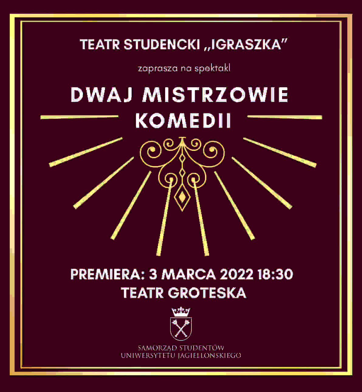 Trzy jednoaktówki, dwunastu młodych aktorów i prawdziwa spirala omyłek – a to wszystko w jednym spektaklu, którego premiera odbędzie się już 3 marca w krakowskim Teatrze Groteska. Obsadę spektaklu tworzą studenci Uniwersytetu Jagiellońskiego na co dzień zajmujący się zarówno dziedzinami bliskimi teatrowi (studiujący wiedzę o teatrze, krytycy teatralni i dziennikarze) jak i odległymi (np. studenci medycyny, chemii, prawa, ekonomii czy historii). Pomysłodawca i reżyser – Mateusz Leon Rychlak – wraz z aktorami zabierze widzów w fantastyczną podróż po ludzkich wadach, zaletach i rozmaitych przypadkach, które z tego tytułu im się przytrafiają, a to wszystko w młodzieżowo-klasycznym stylu, który zapewne przyniesie wiele zaskoczeń.