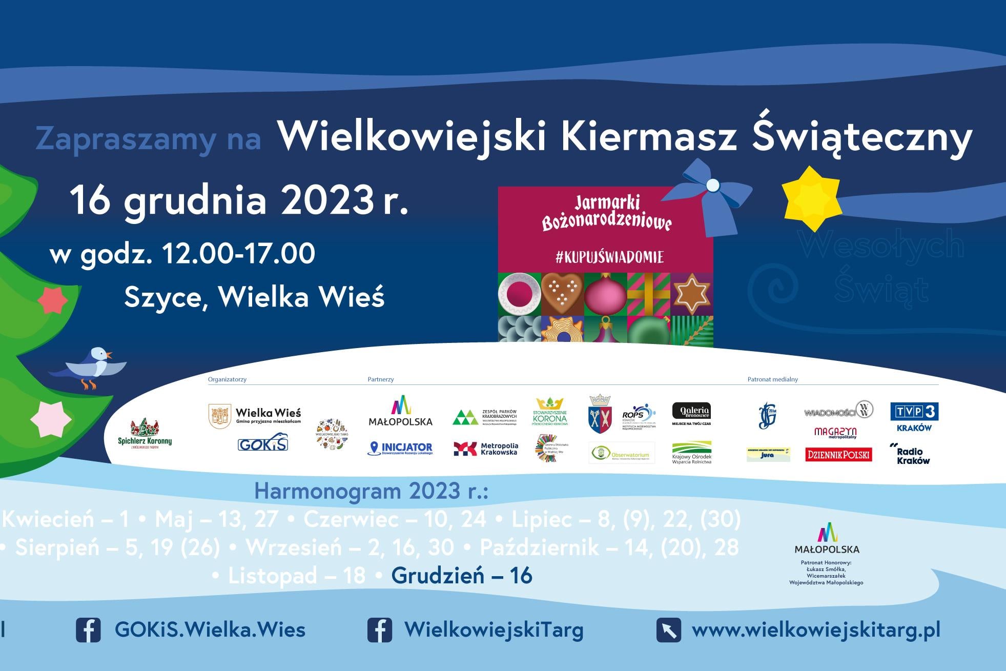 Przed nami wyjątkowy czas związany z nadchodzącymi świętami Bożego Narodzenia. Tak, jak w ubiegłych latach gmina Wielka Wieś oraz Gminny Ośrodek Kultury i Sportu w Wielkiej Wsi zaprasza Państwa 16 grudnia br., od godziny 12.00 do 17.00 na Kiermasz Świąteczny do Szyc pod Urząd Gminy na Placu Wspólnoty 1, byśmy mogli razem celebrować w przedświątecznej atmosferze czas zbliżających się świąt. Zakosztować w lokalnych potrawach, którymi będziemy Państwa częstować dzięki partnerstwu z Krakowskim oddziałem Krajowego Ośrodka Wsparcia Rolnictwa, które promuje świadome wybory konsumenckie, między innymi w akcji #KupujŚwiadomie.