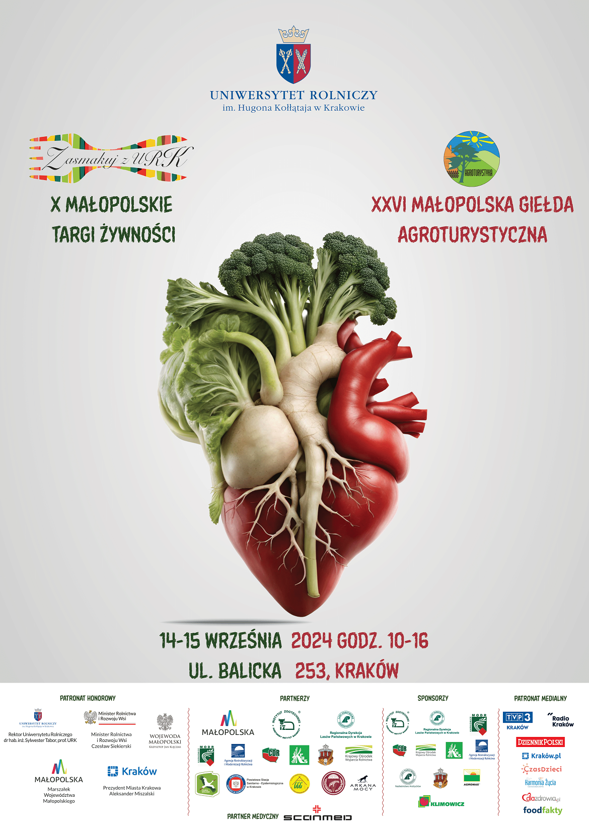 Na Małopolskich Targach Żywności „Zasmakuj z URK” znajdą się liczni wystawcy oferujący szeroki asortyment tradycyjnych, ekologicznych i regionalnych produktów. Wśród nich będą m.in.: Smak Tradycji s.c. z Białegostoku ze swoimi wyrobami wędliniarskimi, Gospodarstwo Pasieczne Miody Wadowickie oferujące miody i produkty pszczele, Winnica Goja z winami z Burów oraz Sosta, która zaprezentuje oleje, octy i musztardy. Uczestnicy będą mieli również okazję spróbować serów dojrzewających od Serowni Podłazy, świeżych soków z Tłoczni Owoców Pawłowski oraz licznych przetworów od Beskidzkiej Manufaktury Przetworów „Dzikie Smaki”. W ofercie znajdą się także ekologiczne owoce od Eko-Sfery Mirosławy Bodziony oraz szeroki wybór wyrobów pszczelich od Niepołomickiego Bartnika i innych pasiek. Na miejscu będzie można także spróbować regionalnych zup i przetworów warzywnych od Żur Piskorek oraz zakupić naturalne kosmetyki i świece od Dotyku Kreacji. Nie zabraknie także stoiska z winem Uniwersytetu Rolniczego z winnicy „Garlicki Lamus”, która znajduje się w podkrakowskiej Garlicy Murowanej.
