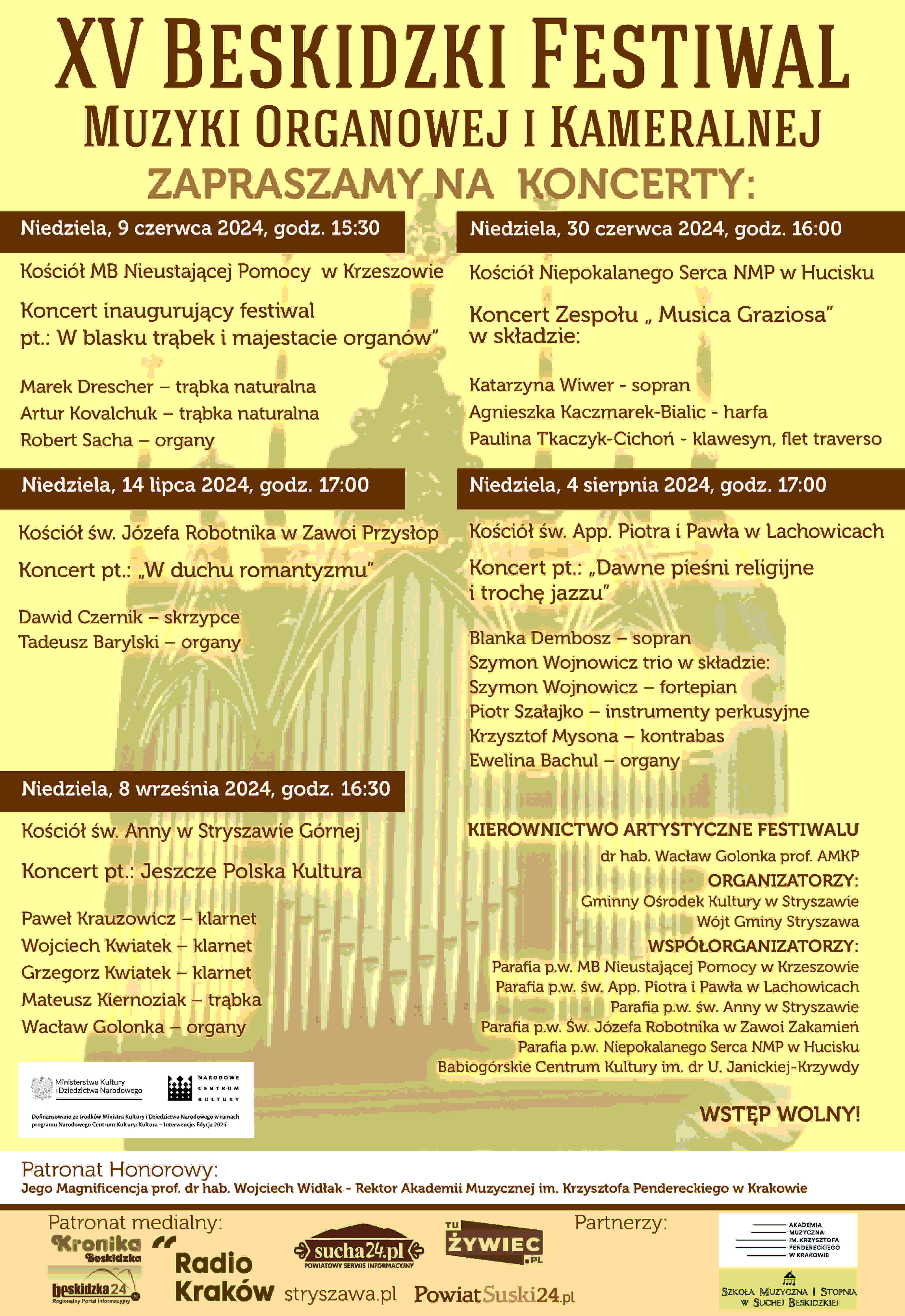 Festiwal oferuje różnorodny program. W jego jubileuszowej piętnastej edycji usłyszymy trąbki, organy, klarnet, skrzypce, ale i instrumenty perkusyjne.