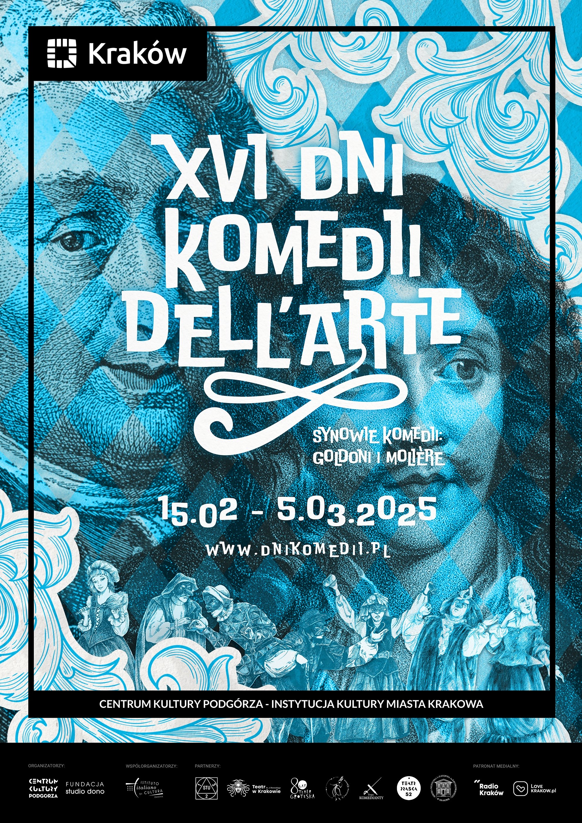 – Goldoni jest ojcem chrzestnym nazwy komedia dell’arte, podkreślającej zawodowy charakter tego teatru. To również on zamyka ważną w dziejach komedii erę – spisując swoje dzieła w formie scenariuszy, systematyzuje je i sprawia, że na scenie kończy się władza aktora-improwizatora, wypełniającego treścią canevas, czyli scenariusze ramowe, a zaczyna panowanie dramaturga i słowa. Z kolei w twórczości Moliera – choć stworzył on nowy rodzaj komedii, komedię charakterów – widać wiele nawiązań do typów postaci komedii dell’arte. Stąd też właśnie ich sztuki będzie można oglądać w ramach XVI Dni Komedii dell’Arte – mówi Agnieszka Cianciara-Fröhlich z Fundacji Studio Dono, capocomico Trupy Komedianty. – Warto też podkreślić, że program tej edycji będzie po dwakroć rekordowy – ze względu na najdłuższy w historii projektu czas trwania festiwalu oraz najszersze pole współpracy z krakowskimi teatrami. Czeka nas prawdziwy maraton komediowej klasyki! – dodaje.
