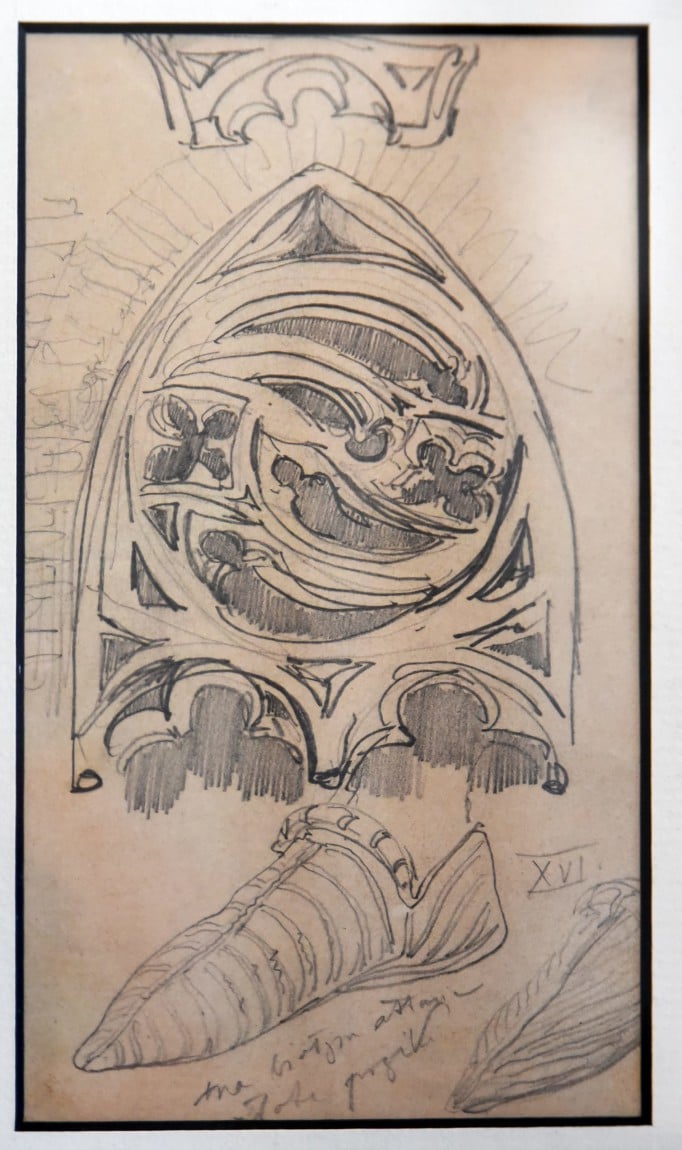Prócz motywu rybiego pęcherza widać na rysunku także but z krótkim napisem "na białym atłasie złote pręciki". "Prawdopodobnie jest to wcześniejszy szkic do zupełnie innego dzieła artysty. Myślę, że to już był dojrzały artysta, znany w kraju i w Europie. Myślę, że to była praca z sympatii do osób z Bochni i dla Bochni. Mógł go wykonac na bieżąco, ale też na spokojnie w pracowni. Wydaje mi się jednak, że w pracowni byłby to rysunek bardziej precyzyjny i niekoniecznie na jakiejś kartce, na której wcześniej szkicował buty" - podkreśla Agnieszka Truś-Bakalarz, kustosz działu artystyczno-historycznego bocheńskiego muzeum.